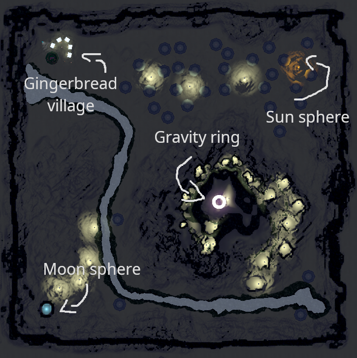 If you get lost, see the map above, you'll need to find both the sun sphere and the moon sphere to beat the game.